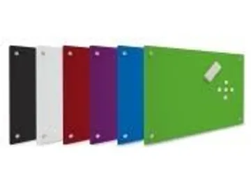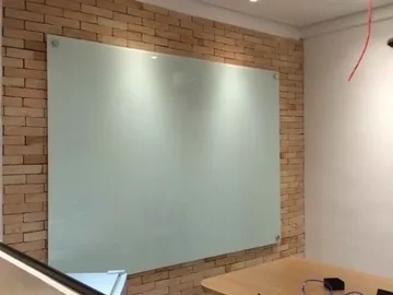 A lousa de vidro serigrafado é feita com vidros temperados de 06 mm de espessura e pintadas com serigrafia a frio, sendo que a tinta é aplicada diretamente na parte traseira da lousa.
